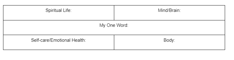 This year in 2021, a sweet friend and colleague, who has been on the “one word resolution” journey with me for years, messaged me a few days before January 31st and asked if I had created a one word resolution with my kids. This was a brilliant suggestion, and our whole family each picked one word that would help guide us individually and that we could encourage each other with throughout the year. If this could be helpful for you, we each created a chart like this: